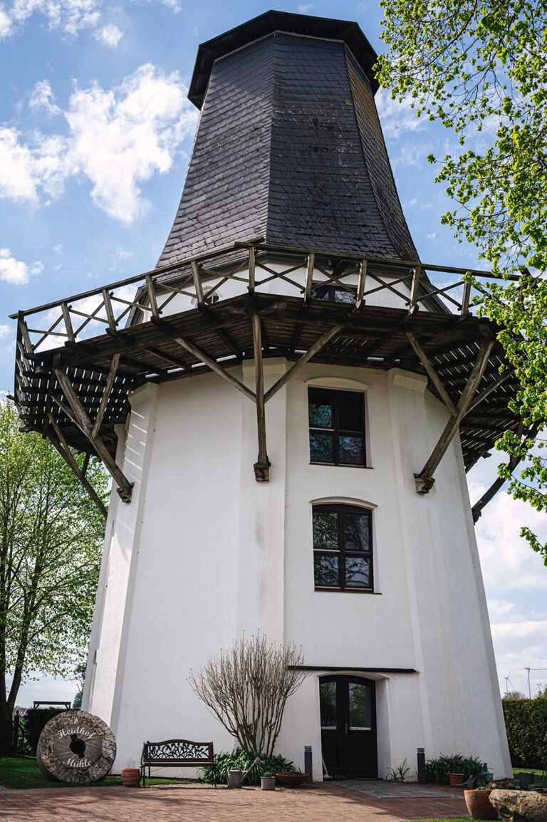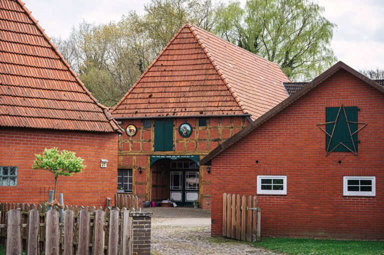 Zu den Gebäuden, die besonders hervorzuheben sind und unter die Kategorie Baudenkmäler fallen, gehören zum einen die evangelische Kirche – eine frühgotische Saalkirche aus dem 13. Jahrhundert – und die Windmühle Sudwalde. Die Galerie-Holländerwindmühle soll um 1881 erbaut worden sein und wird heute als Wohnhaus genutzt. Besonders in Erinnerung bleibt uns aber das Heuerlinghaus Sudwalde, auch Heuerhaus genannt. Stammt aus dem 18. Jahrhundert und wird seit 2001 als Dorfgemeinschaftshaus genutzt. Das Gebäude hat ein Fachwerk mit reetgedecktem Krüppelwalmdach, Steinausfachungen, Niedersachsengiebel mit Uhlenloch und niedersächsischen Pferdeköpfen. Was immer all das auch zu bedeuten hat. Als ungelernte Architekten beschreiben wir es als schön saniertes, historischen Gebäude. Ein Hingucker. Wie auch die Ortschaft im Ganzen.