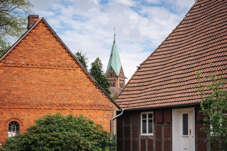 Schmucke Backsteingebäude und Fachwerkhäuser